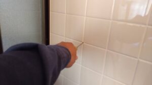 通常はタイル目地の各所に穿孔処理を行い薬剤を注入していきます。